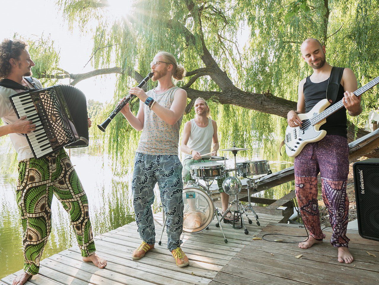 Makatumbe packen internationale Volks-, Tanz- und Popmusik in den Mixer und drücken den Dance Button. Eine Achterbahnfahrt durch allerlei musikalische Stile von Jamaika nach Bulgarien, von dort nach Kolumbien, dann wieder nach London. Reggae, Hip-Hop, Drum’n’Bass, Techno, Polka, Orientalisches: In der Musik Makatumbes ist vieles möglich. Vokalakrobatik und Klarinette breiten sich mit Beatbox, Raggamuffin und Obertongesang auf einer melodischen Akkordeon-Klangwelle aus, die auf einem massiven Groovegerüst aus Bass und Schlagzeug rollt. eines aber bleibt sie immer – tanzbar.